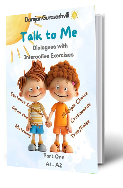 წიგნში სახელწოდებით “Talk to Me” Part One A1-A2 წარმოდგენილია 30 დიალოგი, სხვადასხვა თემაზე. მოცემული დიალოგები და მისი თანმხლები წერითი სავარჯიშოები, საგრძნობლად შეუწყობს ხელს მოსწავლეთა ლექსიკური მარაგისა და სასაუბრო უნარჩვევების განვითარებას.